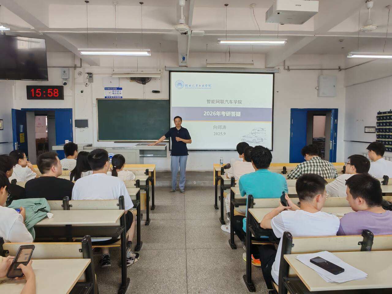 本次活动吸引50余名学生参与,以2022级物联网工程、计算机科学与技术、软件工程三个专业学生为主。向郑涛老师围绕学生最关切的核心问题,系统讲解三大关键内容:一是学院计算机技术、交通运输、大数据技术与工程三个专业硕士方向的初试科目重点、复试考核流程及注意事项,明确各环节备考核心要点;二是详细介绍学院研究生培养体系,包括课程设置、实践环节、导师团队及科研平台资源,帮助学生提前了解研究生阶段学习与研究模式;三是结合2025年研究生录取数据,分析各专业报考热度、录取分数线及录取比例,为学生合理选择报考方向提供数据参考。