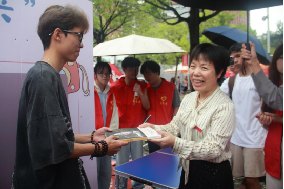 一张张照片在地图上连成一片,直观展现了来自天南海北的学子在此相聚的缘分,也让新生们在寻找与悬挂的过程中,感受到学院大家庭的包容性与凝聚力。副校长张红霞来到437必赢会员中心迎新现场,亲切看望2025级新生,并将亲笔签名的《孟少农传》赠予来自黑龙江的两名同学,以表彰他不远千里求学的精神,并勉励他传承汽车人的报国志向。