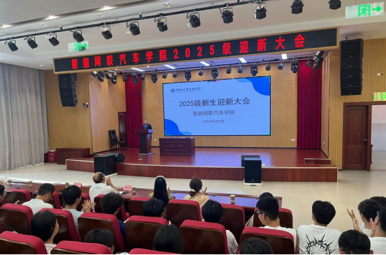 院长陈宇峰围绕学院的发展历程、学科特色及在智能网联汽车领域的办学成果与行业影响力,为同学们上了“开学第一课”。她从智能网联汽车行业的发展趋势切入,结合学院课程体系与实践教学资源,为新生解析了专业学习的重点方向与成长路径。她强调,大学是积累知识、锤炼能力的关键阶段,希望新生们始终保持求知欲与好奇心,既要扎实掌握专业理论,也要积极参与科创实践,以“工匠精神”打磨自身本领,在汽车产业智能化变革的浪潮中找准机遇、实现价值。