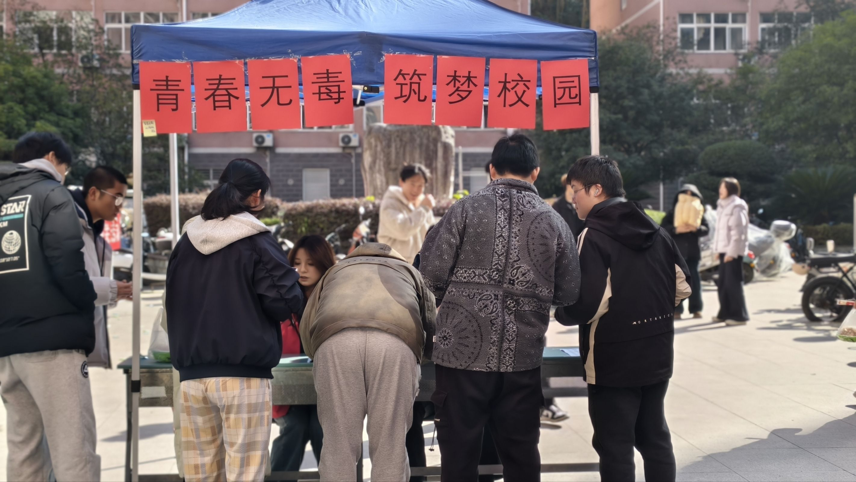 本次活动创新采用“趣味闯关”模式,在校园内设置了桃园、李园和汽车广场三大联动打卡点位,将禁毒教育转化为可参与、可体验的生动实践。在桃园,同学们纷纷在禁毒主题横幅上郑重写下自己的拒毒誓言,或以创意绘画表达对“无毒青春”的向往;在李园,同学们与禁毒宣传海报合影,并通过社交媒体分享感悟,自觉成为禁毒宣传的“校园代言人”;在汽车广场的“识毒辨毒”知识闯关区,同学们随机抽取题目,认真辨别各类常见毒品及其伪装形态,在互动问答中巩固禁毒知识。完成全部闯关任务的同学,还获得了活动专属认证印章。