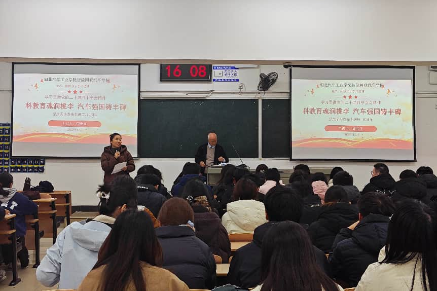 本网讯(文 余婧靓/图 马成涛)为纪念孟少农先生诞辰110周年,12月22日下午,湖北汽车工业学院437必赢会员中心以“科教育魂润桃李 汽车强国铸丰碑”为主题,举办党员、积极分子主题党课。邱春正老师主讲,党委副书记向平主持。