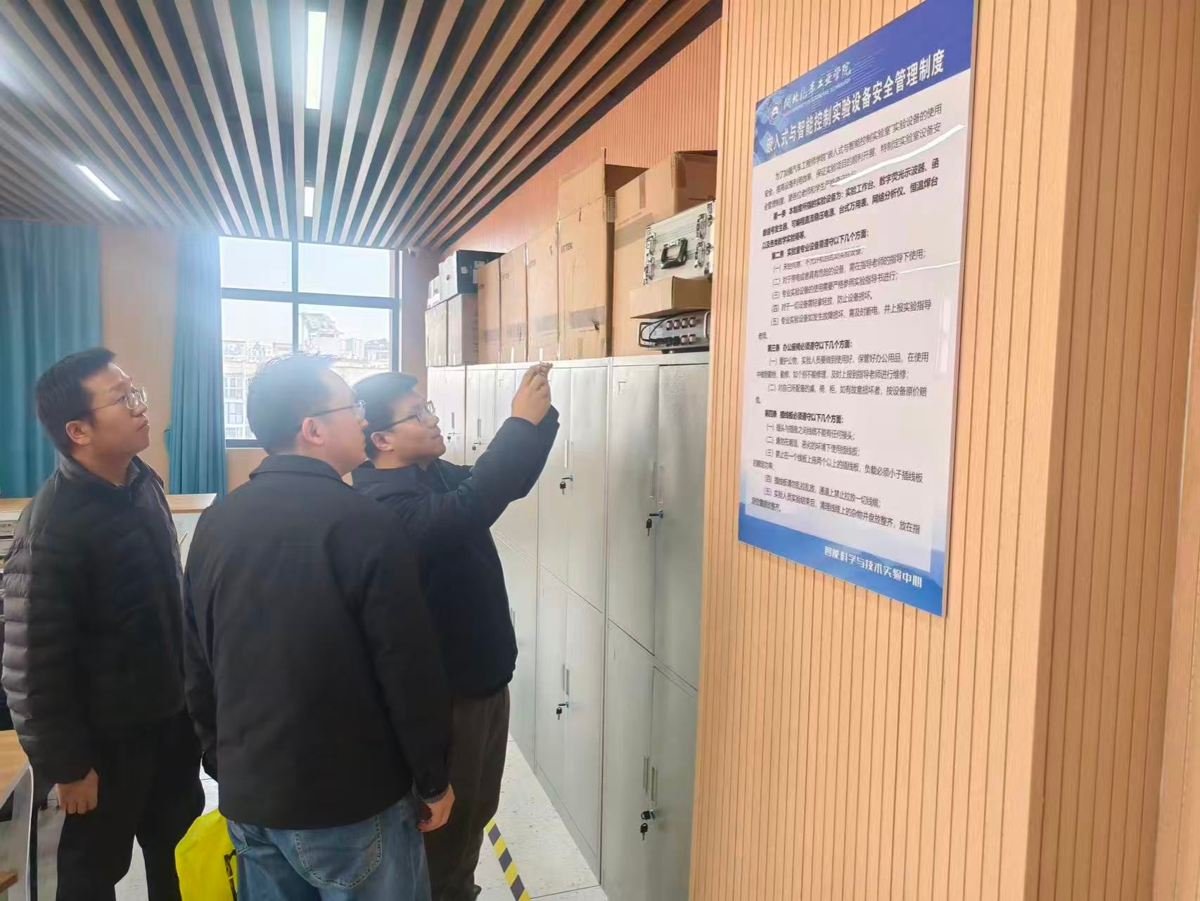 2026年1月16日上午,寒假放假前夕,学院龚家元副院长与资产及实验中心主任张毅一行,先后走访了第六教学计算机实验教学示范中心机房、计算机工程与软件中心机房、产教大楼智能科学与技术实验中心相关实验室,开展寒假前实验室安全专项检查。
