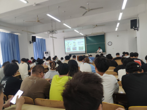 9月9日,团队转赴武汉工程大学流芳校区,在L1103教室开展第三场定向宣讲。主讲人朱政泽为22级计科7-14班学生详细介绍了智能网联汽车领域的科研进展、学院研究生培养特色及实践教学资源。现场学生围绕“科研项目参与”“导师匹配机制”等话题踊跃提问,互动气氛热烈。